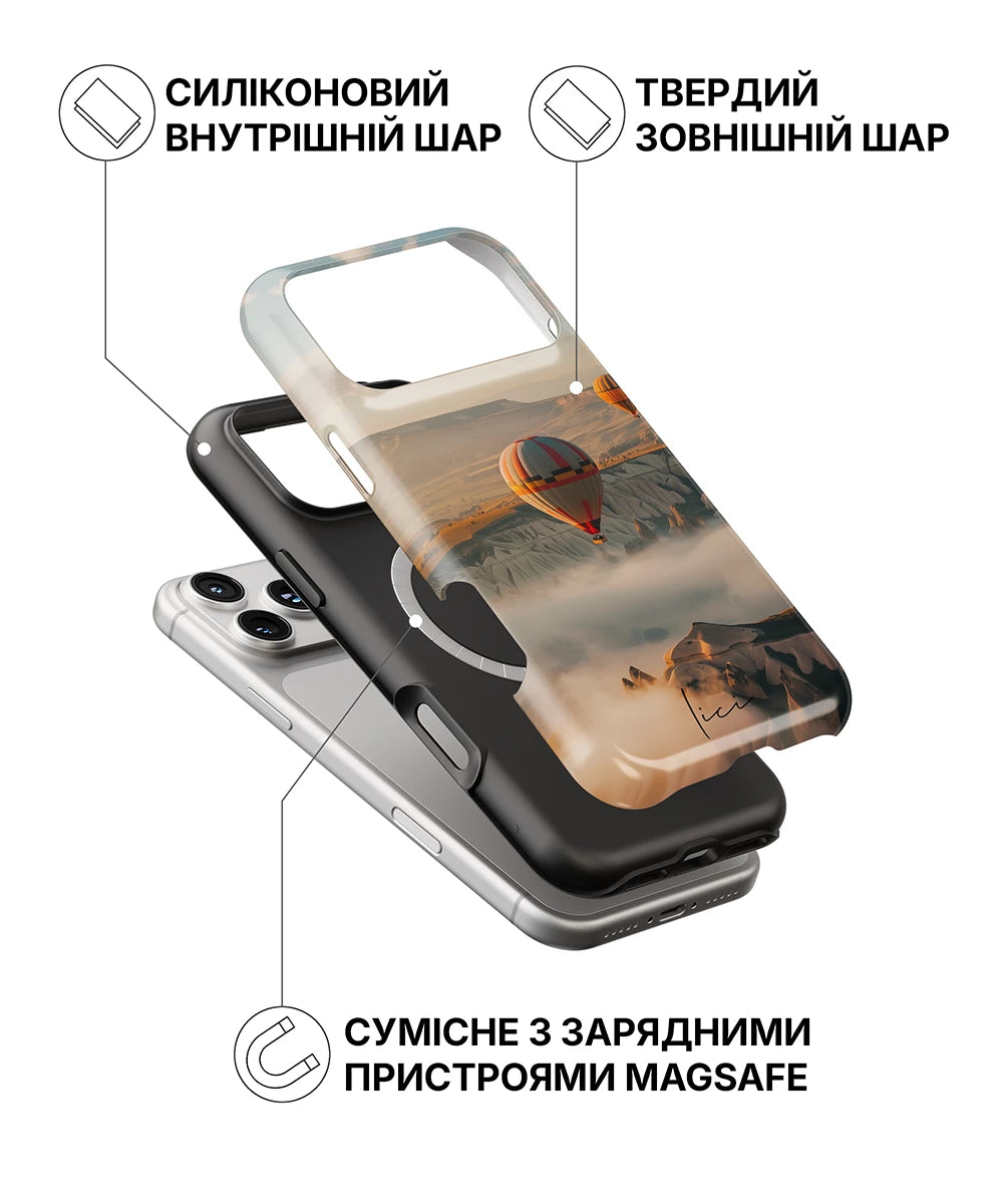 Відкрийте для себе абсолютно новий рівень захисту для вашого iPhone з нашим двошаровим чохлом, де неперевершений дизайн поєднується з передовими технологіями. Яскраві принти та стійкі до вицвітання кольори перетворюють ваш чохол на більше, ніж просто захист — це щоденне вираження вашого стилю.